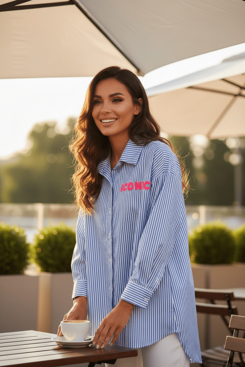Chemise rayée inscription ICONIC - Taille unique 36 au 42.